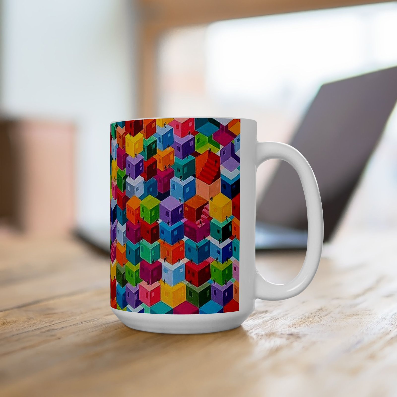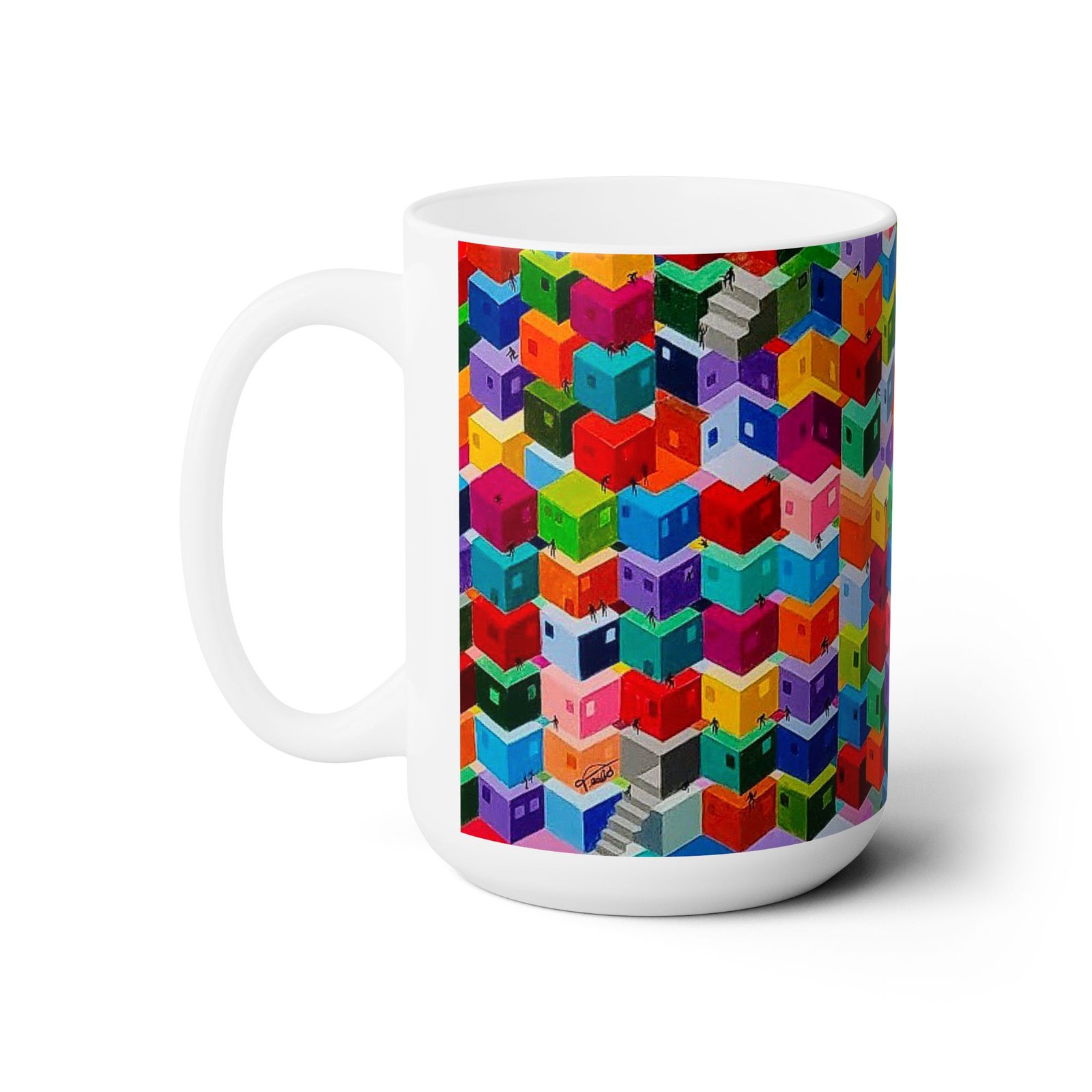 Large 15-ounce custom mug. It’s microwave-safe and can be washed in the dishwasher or easily cleaned with a mild detergent. Another great piece of artwork from the Studio Teabo collection