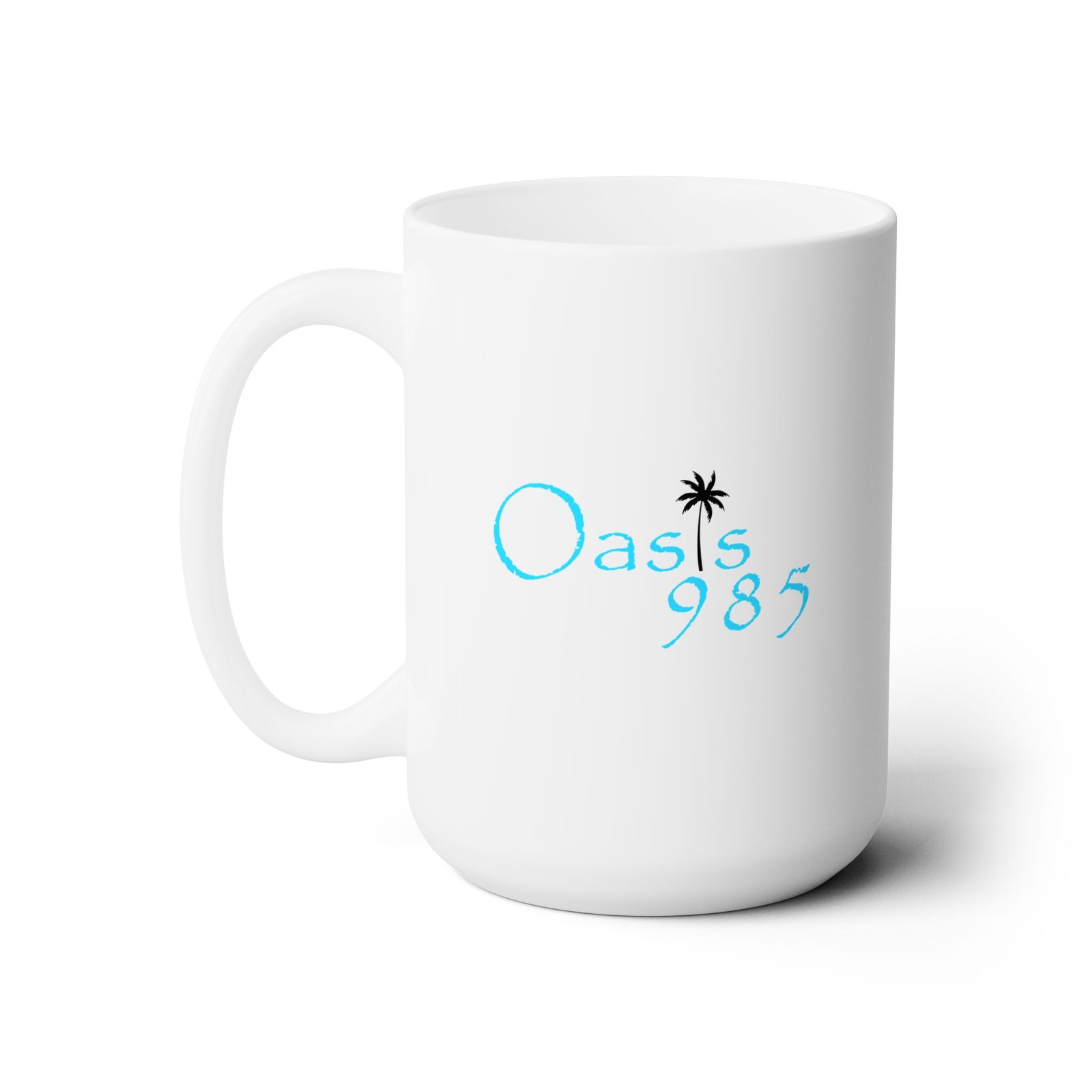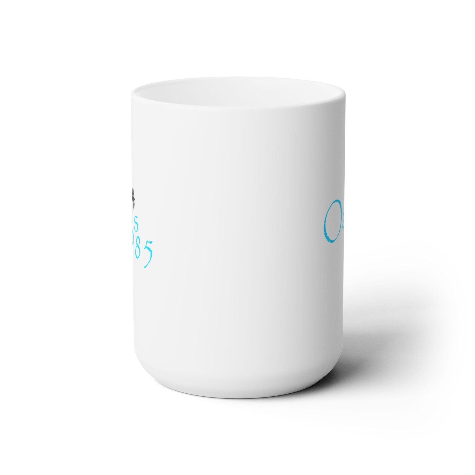 Large 15-ounce custom mug. It’s microwave-safe and can be washed in the dishwasher or easily cleaned with a mild detergent.