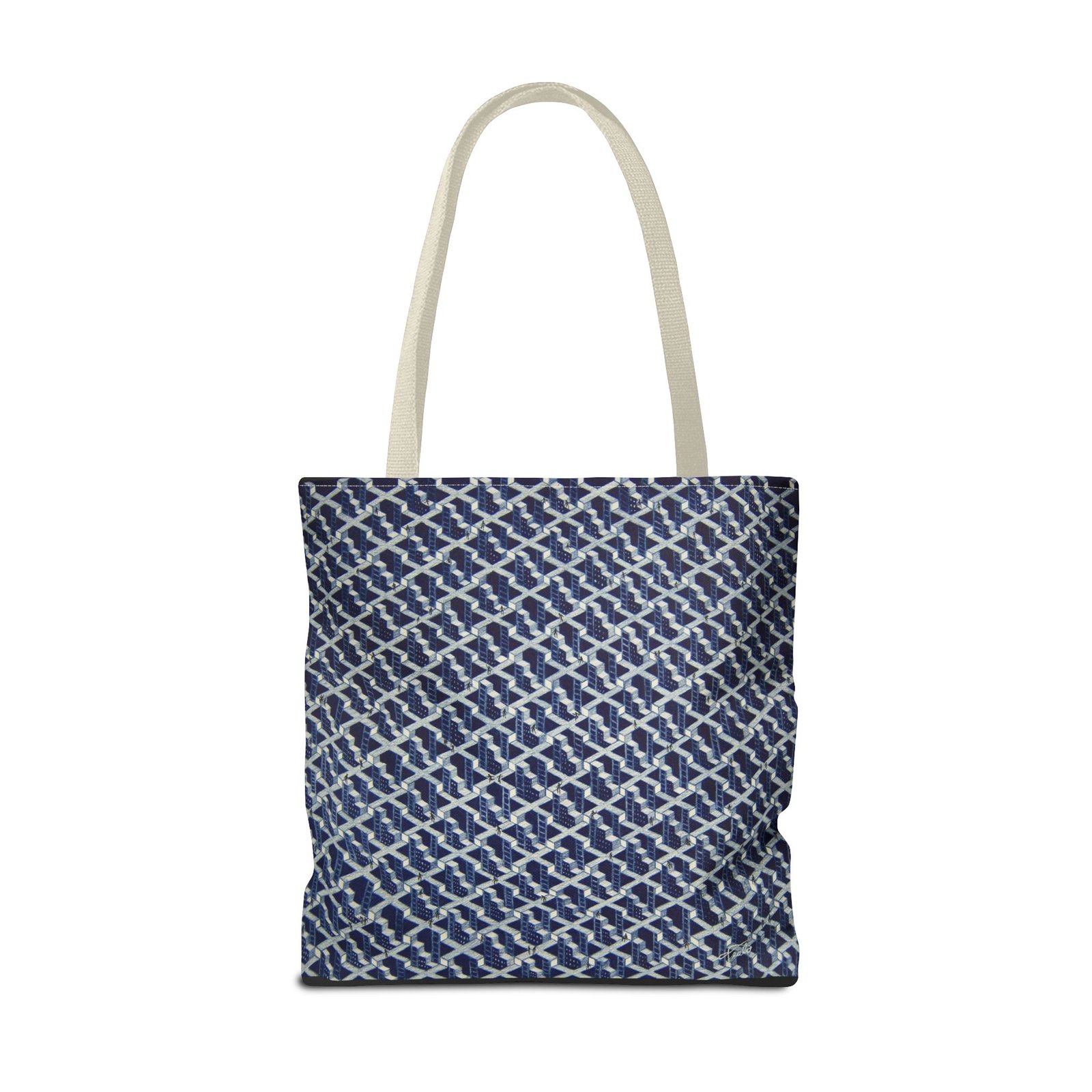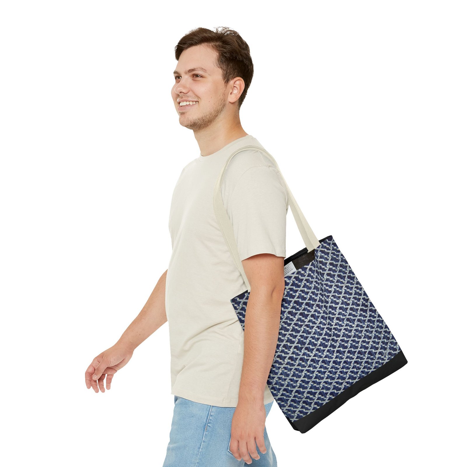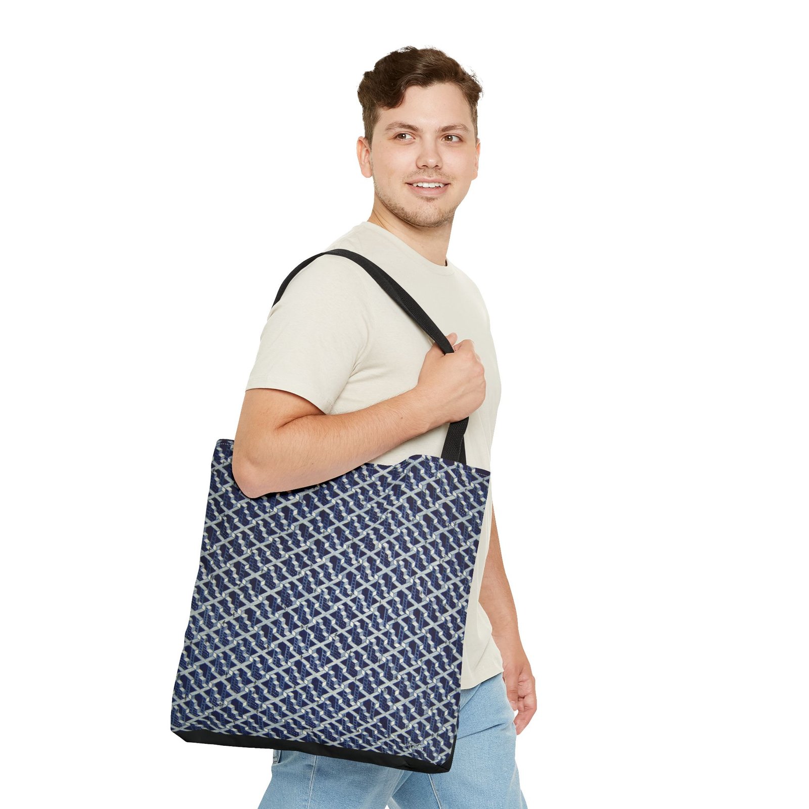 Available in 2 sizes to add both functionality and style, these custom-printed tote bags come with multiple handle colors. Made with spun polyester, these bags feature double-stitched seams, cotton webbing straps, and nonwoven laminate lining for high-end durability.  The printed design is created with dye sublimation for high-end visuals.